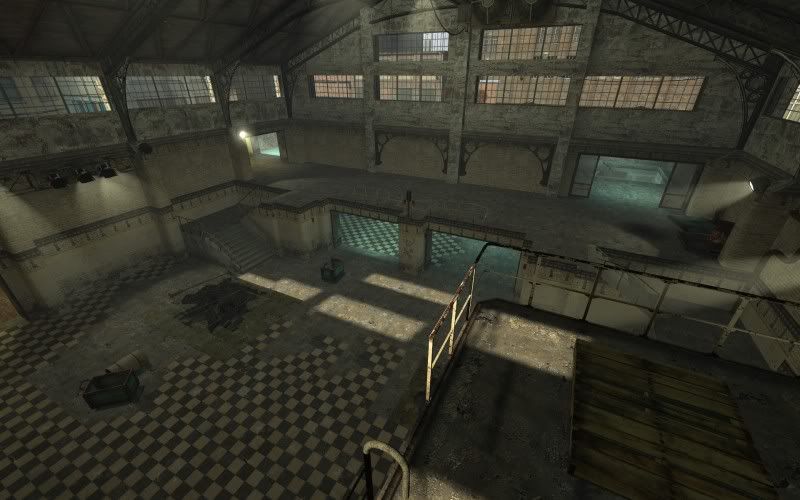 Main warehouse area with rocket tower.