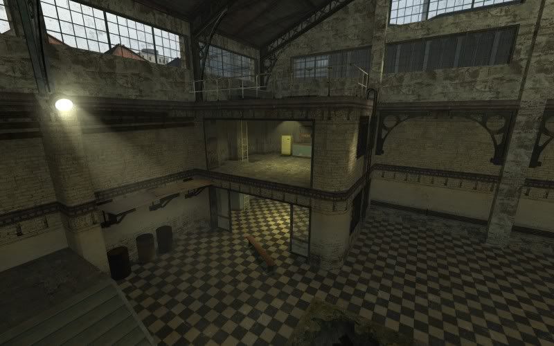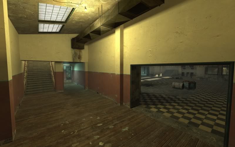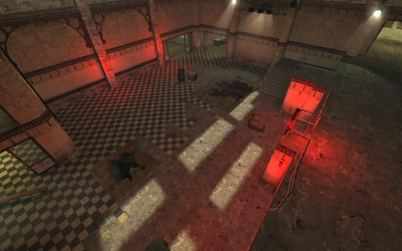 Two exploding traps to get people out of the open areas. Traps are blown after a short delay from a button on second level. There is also a delay to blow the trap again.